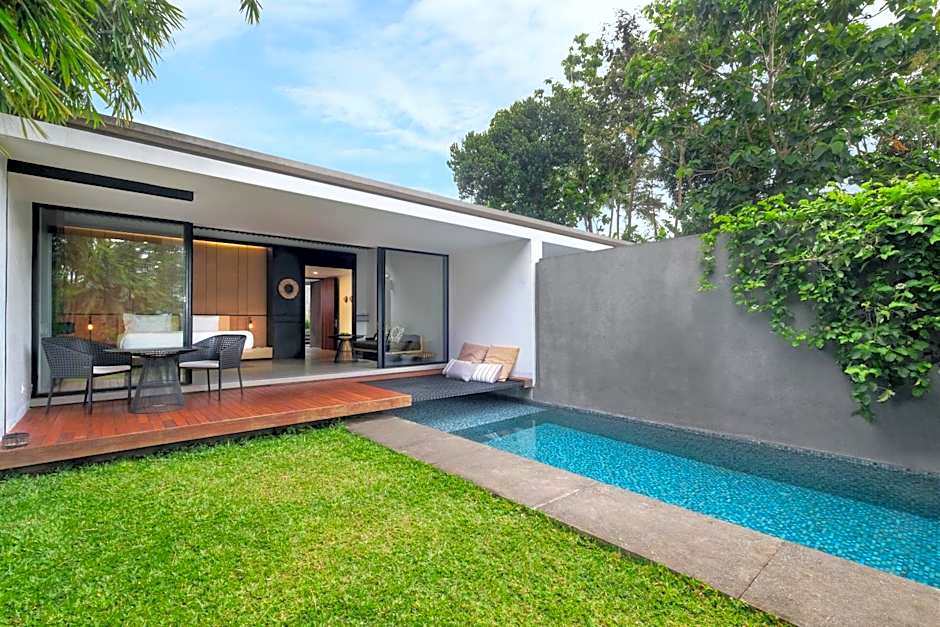 This villa has a garden view and a private pool with an oversize and custom-made hammock. It offers a separate air-conditioned cabana with a living room, daybed, and a dining table for 4 people.
